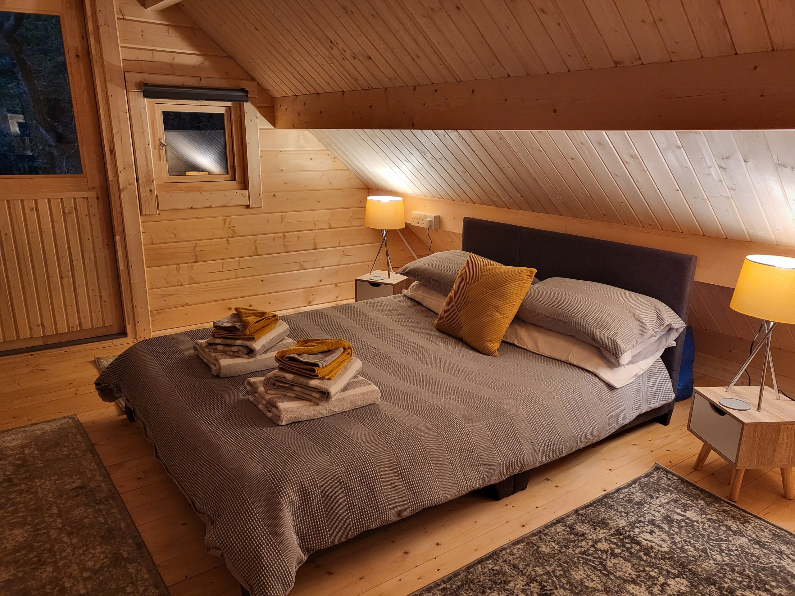 Oaks accommodation is situated over two floors and will sleep up to six people. There are two private bedrooms, a double upstairs with private balcony and a twin bedroom on the ground floor. Alongside the upstairs bedroom is a beautiful mezzanine containing a large double sofabed and access to a second balcony, this wonderful space is great as a third bedroom or additional living space.